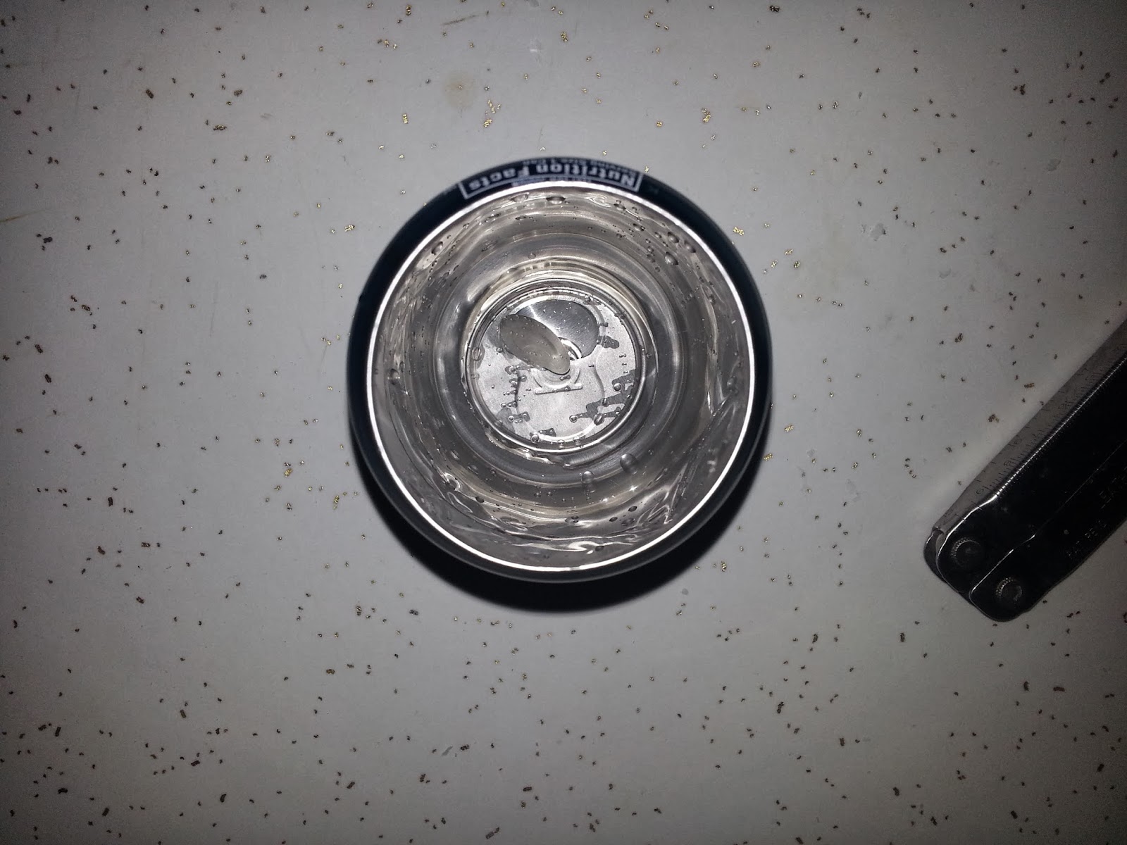a fixed blade knife to press down on the top rib of the can indenting the can in