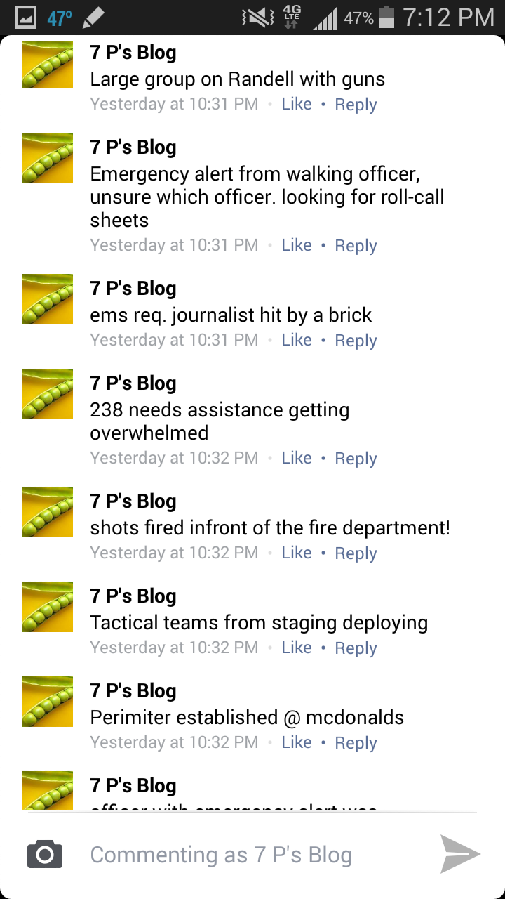 7 P's Blog Posted by Joshua Shuttlesworth · 18 hours ago Ferguson, MO Thread: I will be updating here with scanner traffic from the State Police Tactical Operations Channel